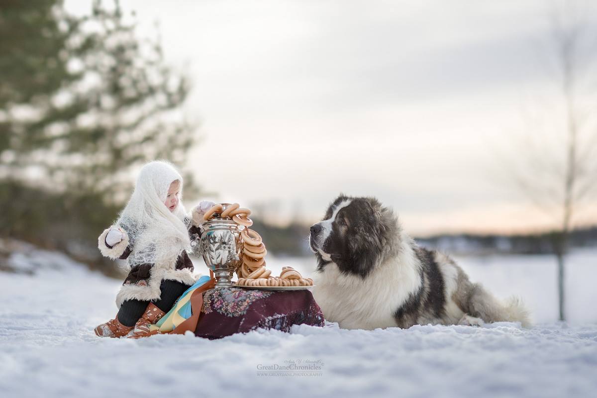 "Главная особенность этого фотопроекта, отличающая картинки этой серии от общепринятого подхода к детской фотографии с животными заключается в том, что главная модель в кадре всегда собака. А дети выступают в кадре в роли реквизита, как бы шокирующе это не звучало."