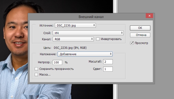 у меня фотошоп 2014сс .Не могу найти внешний канал в вкладке изображение. Как в Англ. версии будет "внешний канал" ?