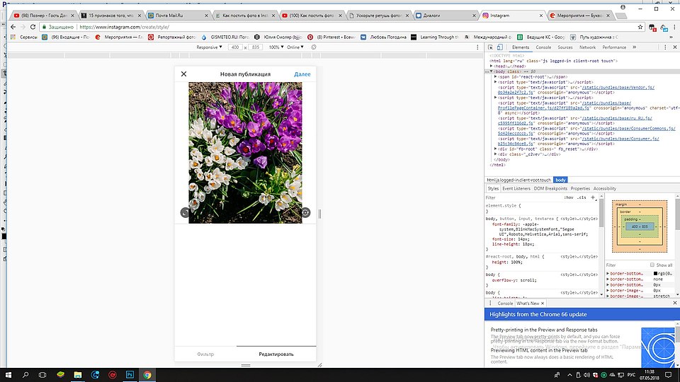 Поддерживаю всех предыдущих комментаторов, спасибо. Вопрос, есть ли возможность загружать с компьютера несколько фото в один пост?