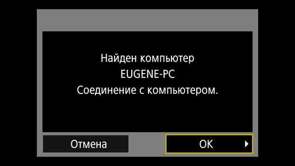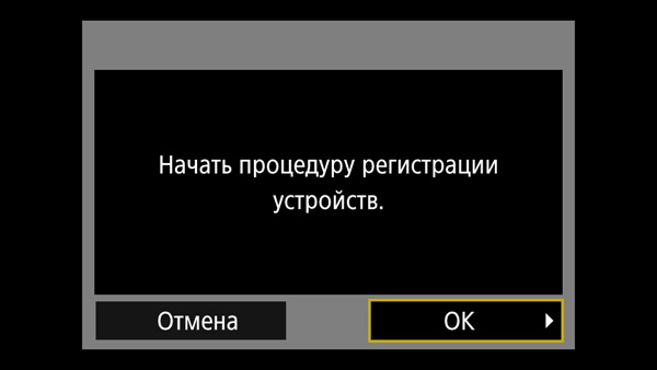 После успешного подключения к компьютеру, камера выведет запрос о регистрации устройства. Нажимаем ОК