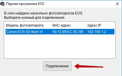 В открывшемся окне на компьютере выбираем нашу камеру и нажимаем Подключение