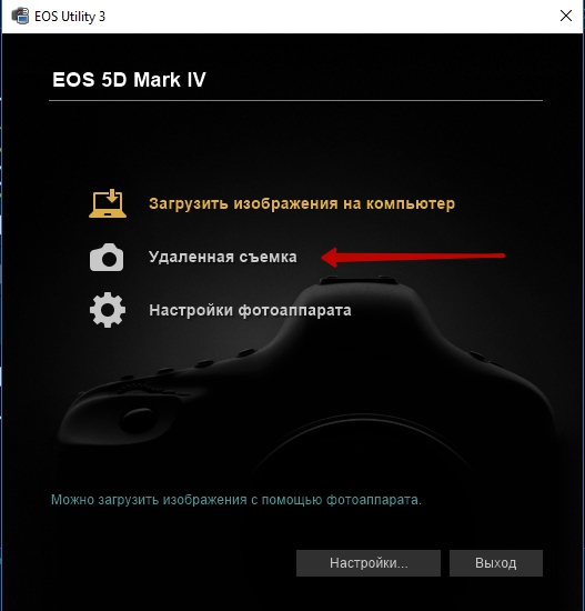Появится окно выбора режима работы. Выбираем Удаленная съемка