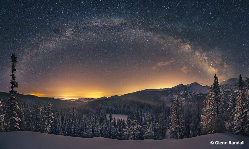 Млечный путь над Лонгс Пик после апрельского шторма, Национальный парк Роки-Маунтин, Колорадо.
